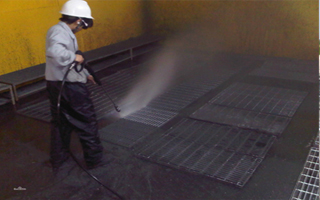 高壓水射流清洗是利用經(jīng)設備增壓系統(tǒng)加壓的水由噴頭射出形成,靠高速水流切割擊碎管道內(nèi)的結垢?物,并隨高壓水流出排...